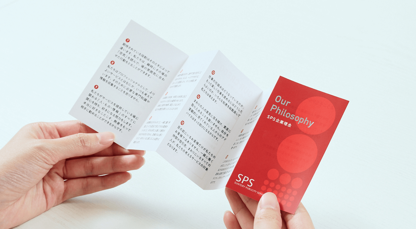サントリーパブリシティサービスには「OUR CREDO」〜SPSサービス憲章〜」があります。