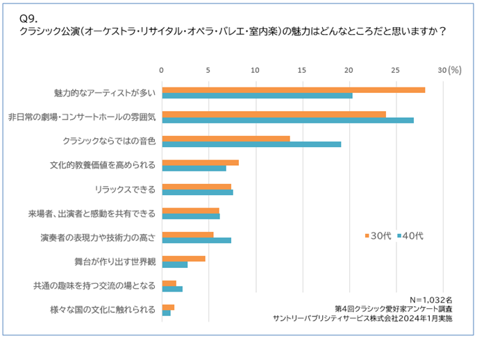 第4回目となる今回は、手軽に多彩な音楽が楽しめる時代に、クラシックの魅力を次世代につなげる役割を担う30~40代に限定し、1,032名に対して調査を行いました。