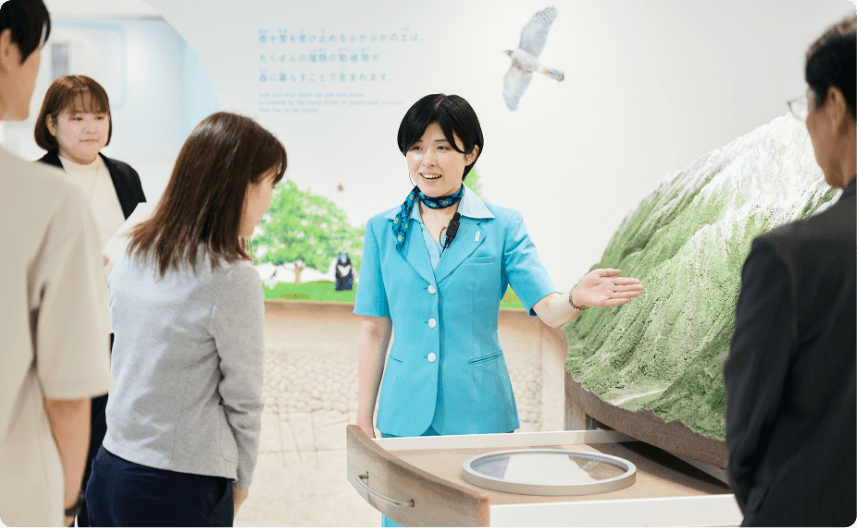 来館されるお客様に対して、企業ブランドや地域・文化の魅力を伝えることで、企業や施設のファンづくりに貢献します。クライアントのニーズや課題を把握しながら、施設運営の責任者として運営オペレーションの構築やスタッフ育成に携わります。