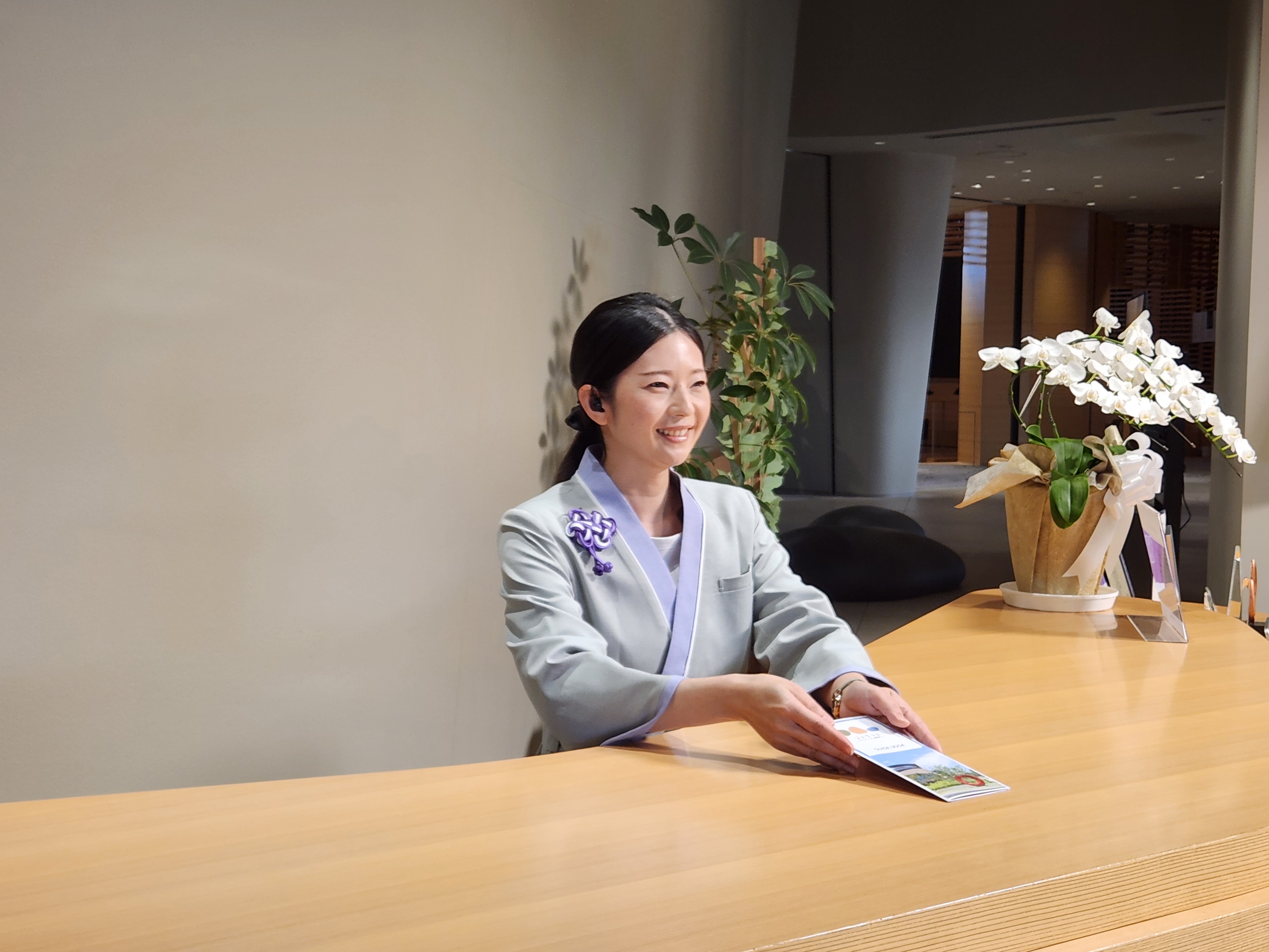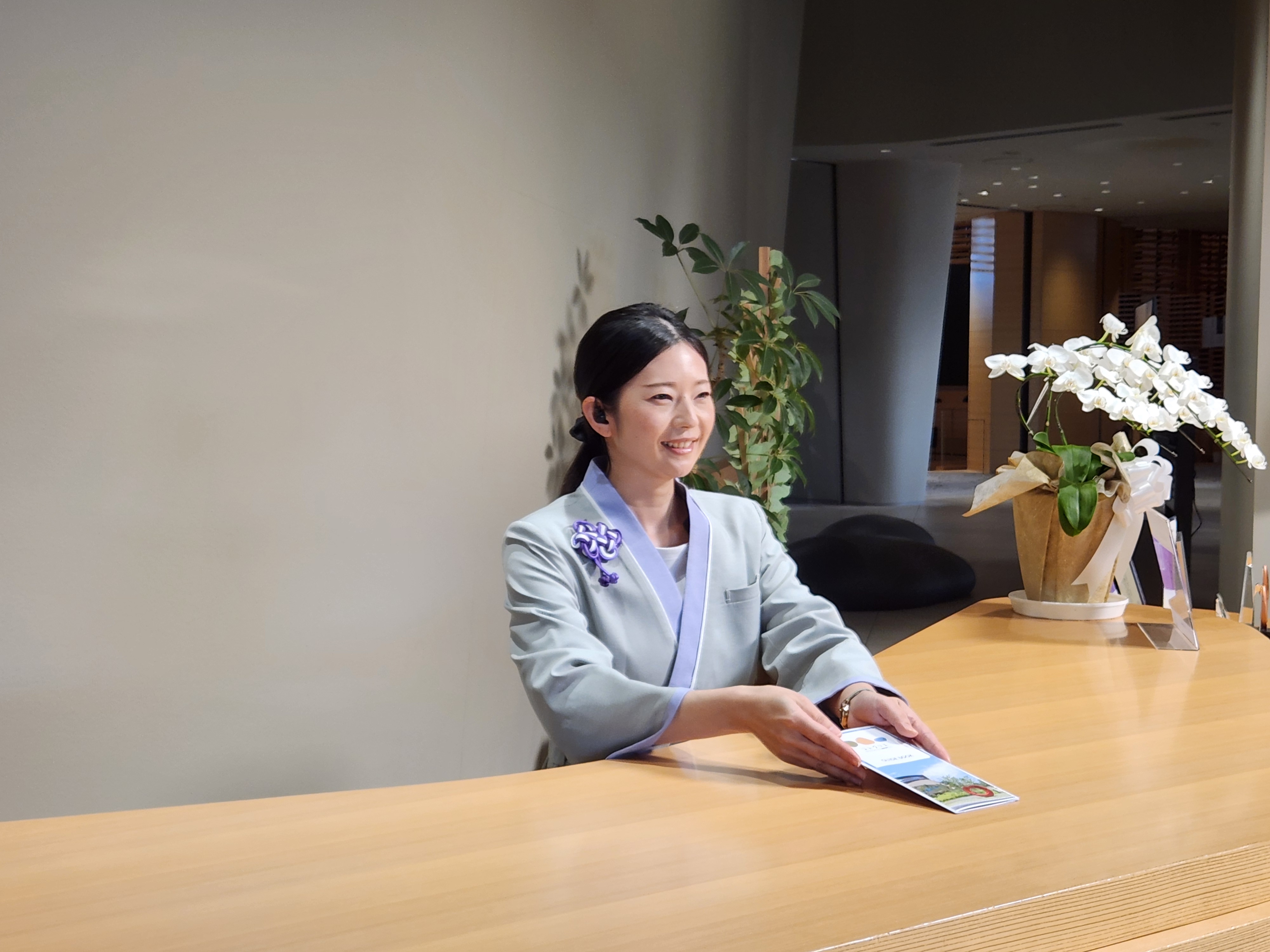 来館者の受付対応や案内資料の手渡しなど、スムーズな利用をサポートしています。