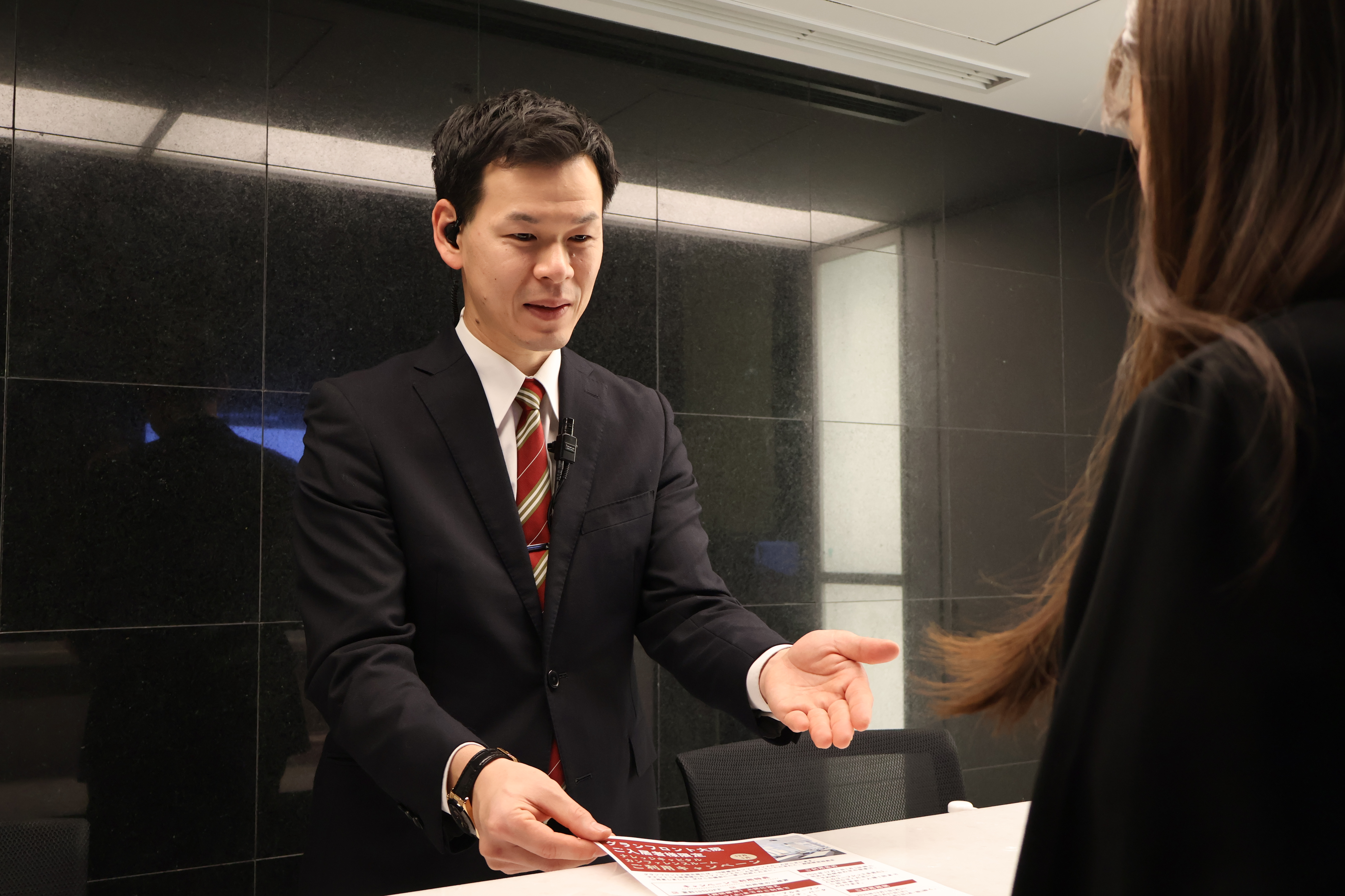 私が現在所属しているPRコミュニケーション事業部 施設運営部は、クライアント企業が運営する商業施設や会議室、研修センター、受付等の運営業務を受託し、それぞれの企業や施設が持つ魅力を体験を通じて伝えていくことがミッションです。AIにはできない、人だからこそできる、お客様の背景や心の動きを汲む「傾聴力」を重視し、一人ひとりに合った接客・コミュニケーションを心がけています。
