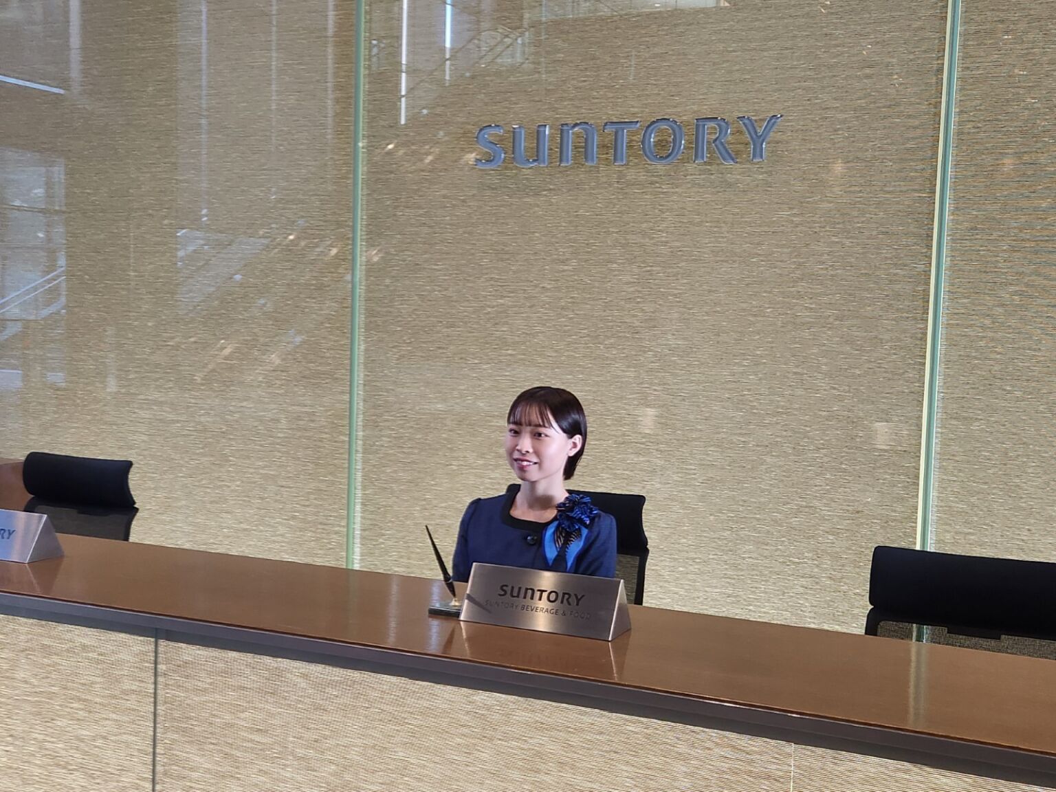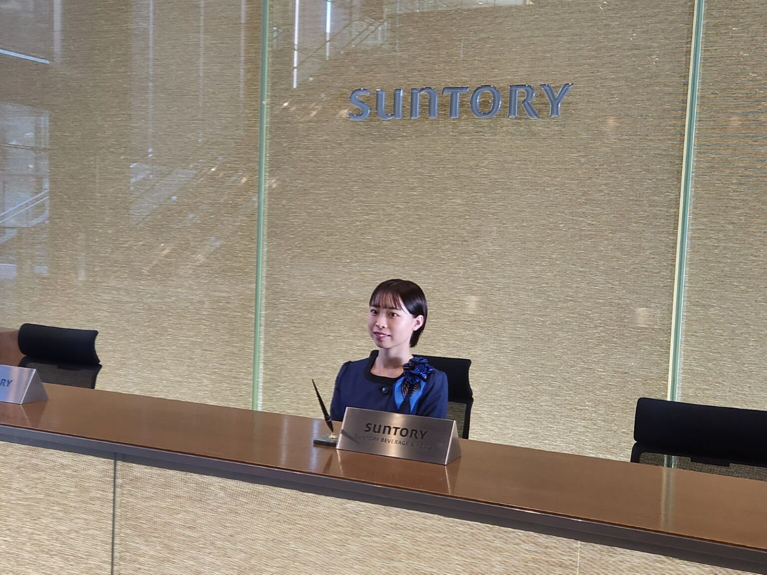 お越しになるお客様やサントリー社員の期待に応え、気持ちよくお迎え・お見送りを行うことを意識しながら、日々業務を行っています。 主な業務は、1階応接室をご利用されるお客様のご案内と、担当する社員の方へのお取次ぎです。 また、役員宛てのVIPのお客様対応を行う受付業務も担当しています。 その他、入館証の貸し出しや予約の調整なども行っています。
