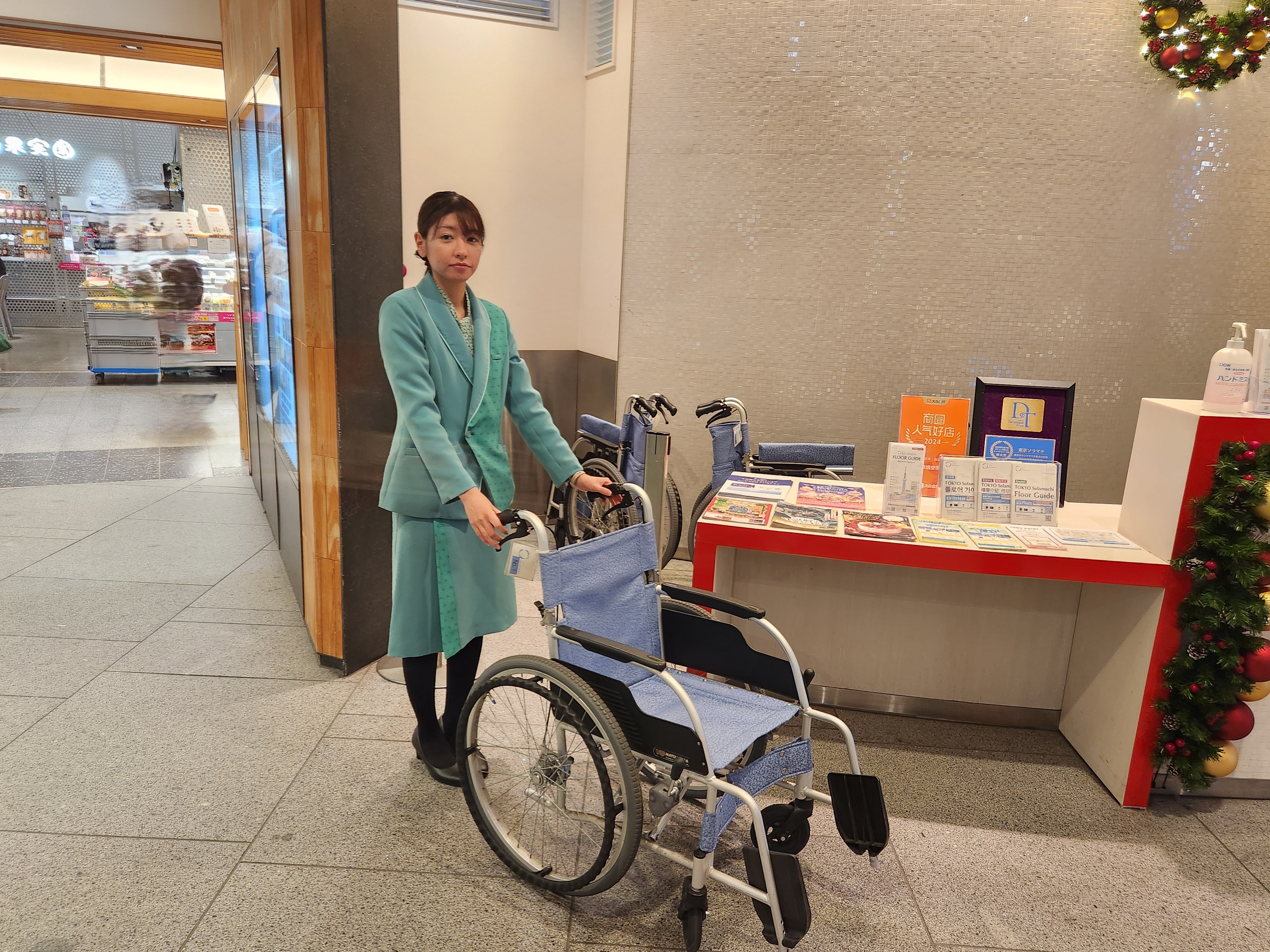 必要とされるお客様には車いすを貸し出すなど、安心して館内を楽しめるようサポートします。