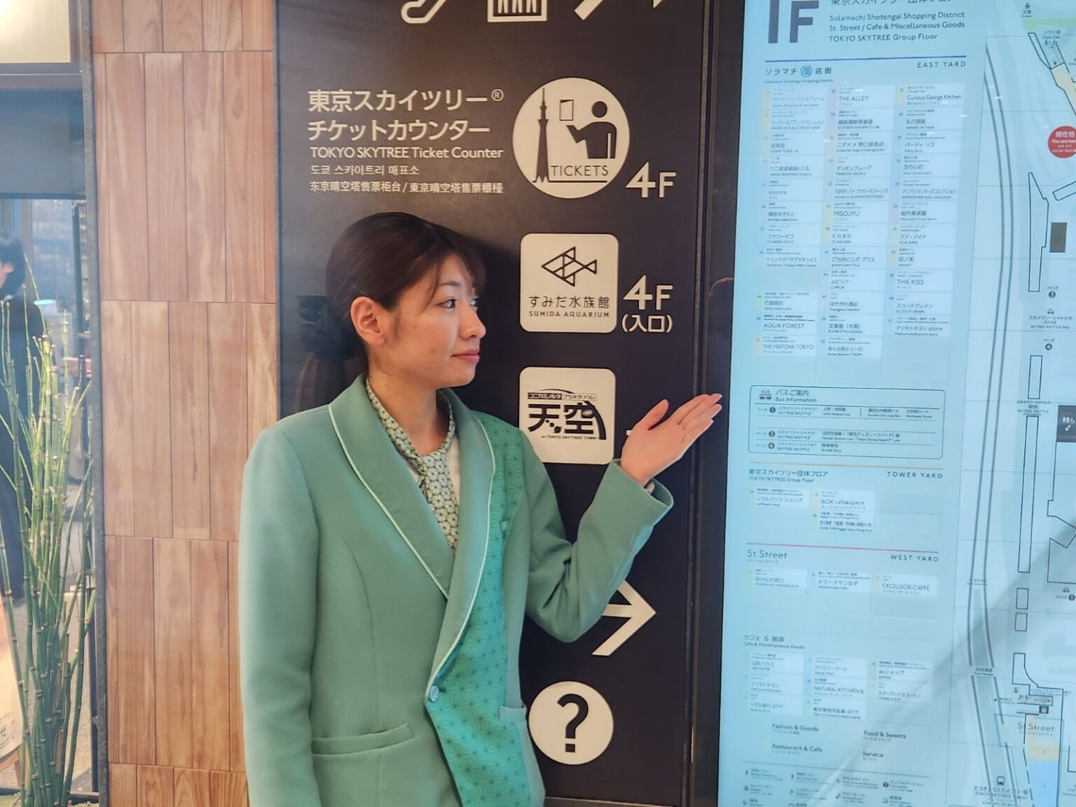 私の主な仕事は、東京スカイツリーやソラマチにお越しのお客様をご案内することです。 最初は不安そうだった方が、笑顔でカウンターを離れていく瞬間に、心からやりがいを感じています。